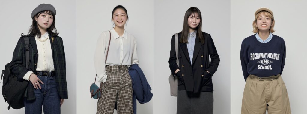 柳沼 芽以:この春から大学生(フランス文学専攻)になったばかりの最年少/在住:東京都/身長:170cm/職業:大学生/得意なコーディネート:プチプラ、デニム、ポロシャツ、シャツ